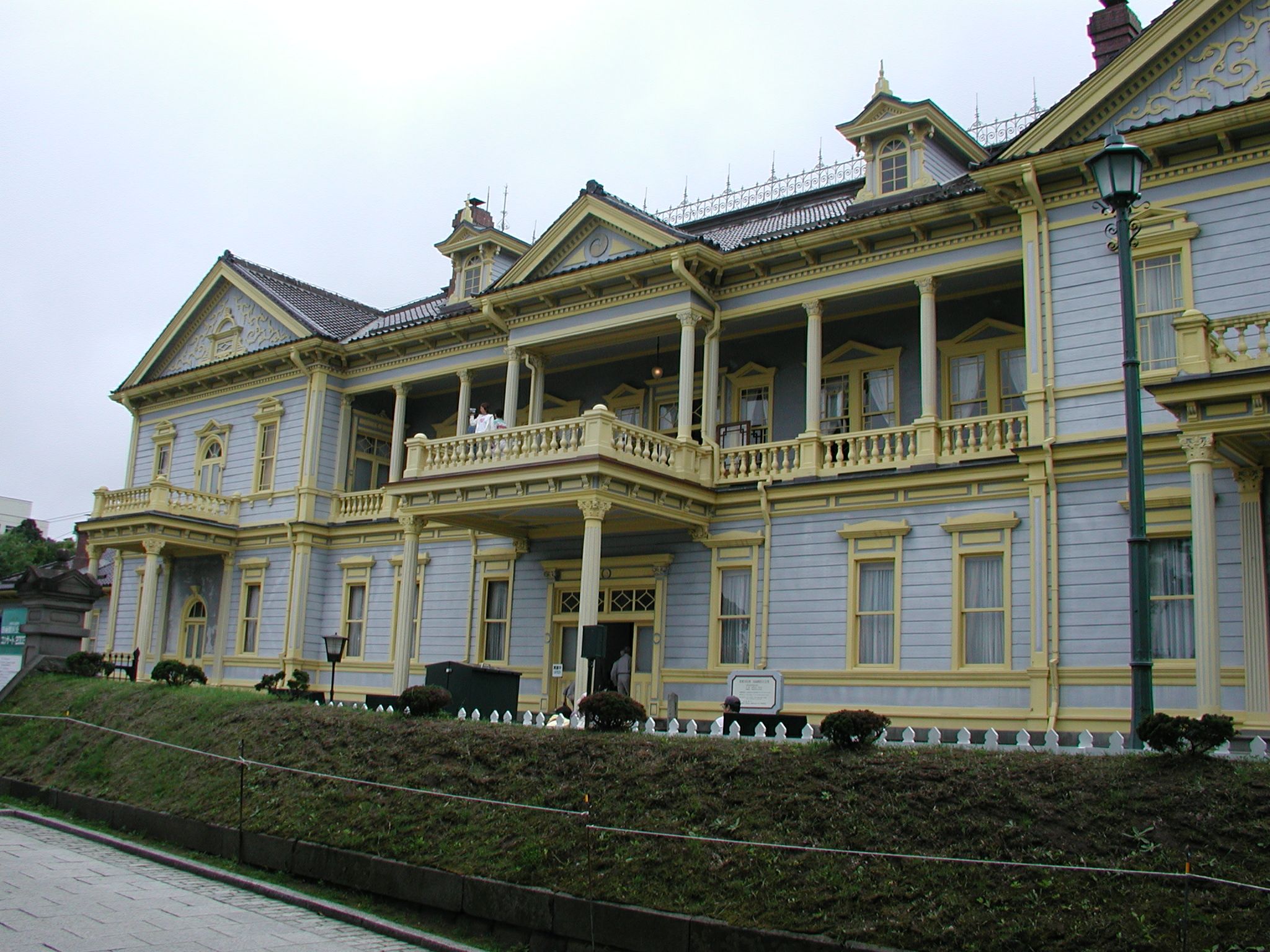 独特の色使いによる異国情緒たっぷりの旧函館区公会堂。明治43年建立の国重要文化財。