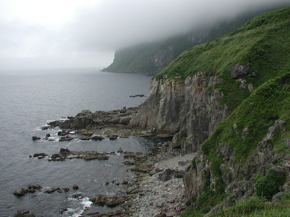 を見せる函館山のもう一つの顔は切り立った断崖絶壁でその荒々しい姿は人を寄せつけることもできない。