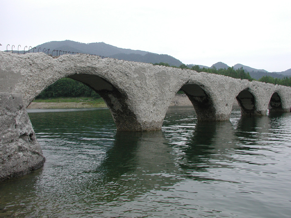 この橋梁が見られるのは冬から夏まで。秋から冬にかけてはダムの水量が増し、橋は水没してしまう。