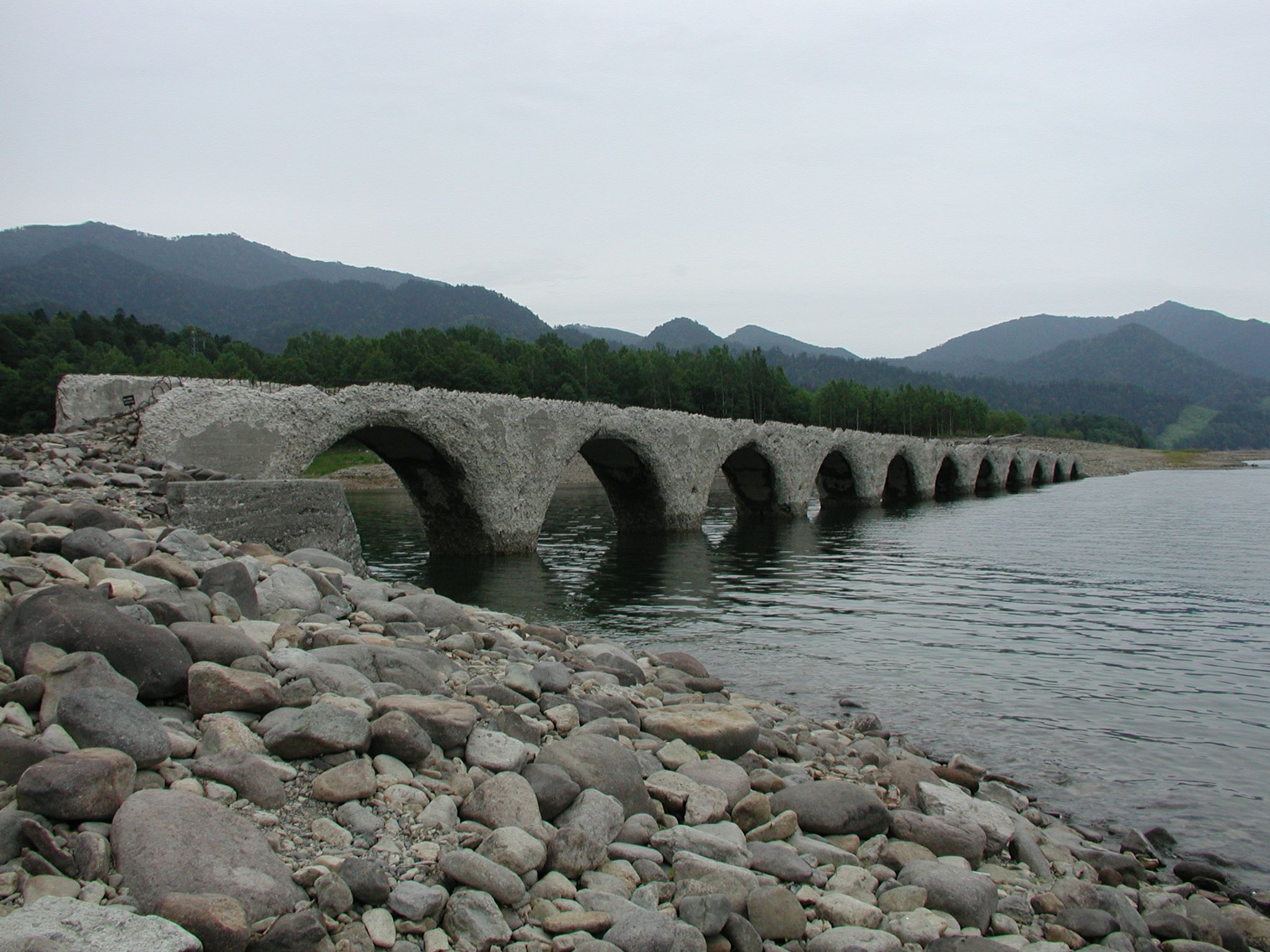全長130mの11連アーチ橋。そのほかの旧士幌線のコンクリートアーチ橋とともに北海道遺産に登録されている。