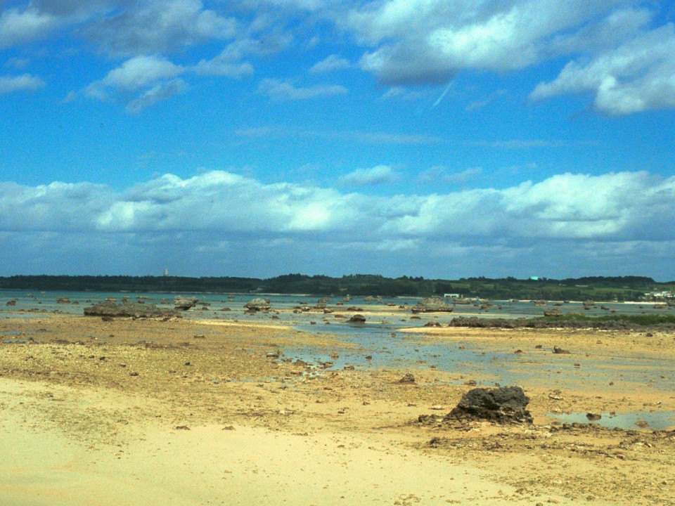 魚垣(ながき) 佐和田の浜から下地島空港滑走路の東側にかけて。このあたりでは潮の干満を利用し、海の中に小さな石垣を作り、狭くなった出口に向かう魚を網に追い込んで捕らえる「魚垣」という漁法が伝わります。