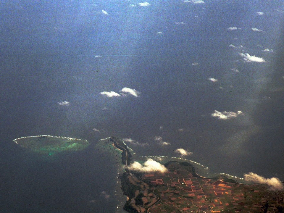 強烈な逆光ですが、宮古島の代表的な景勝地である東平安名崎が見えました。