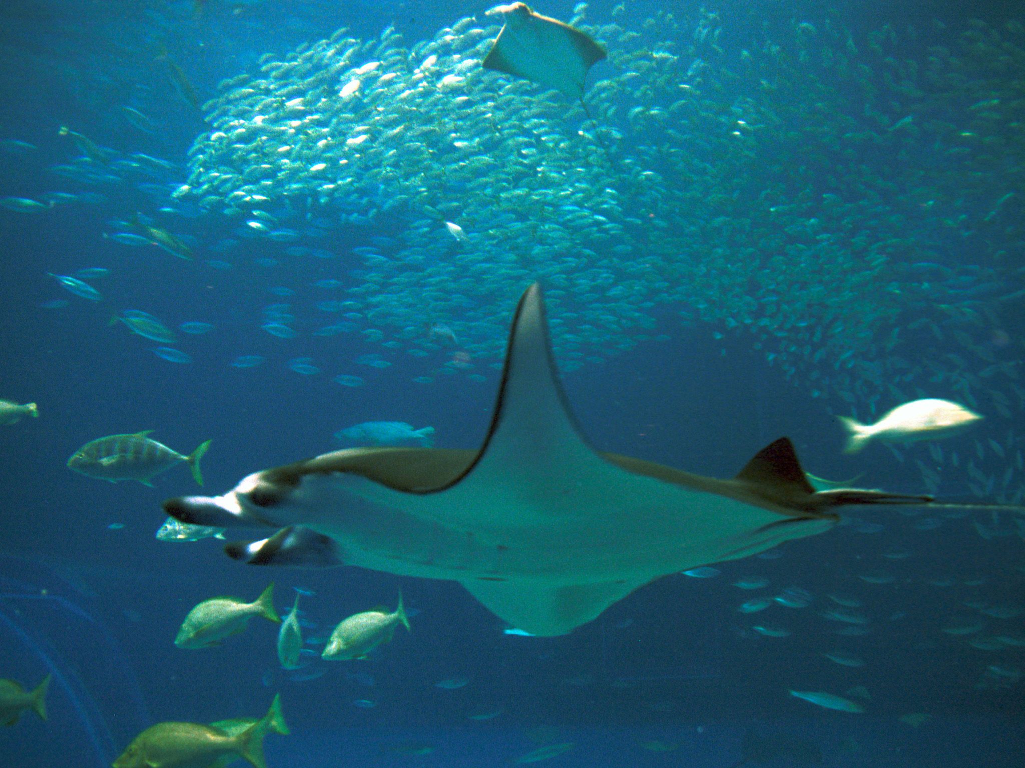 昔の旧水族館でもマンタは泳いでいたが、覗き窓の奥でしか見ることができなかった。今は大水槽で心ゆくまで見ることができる。