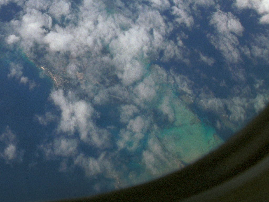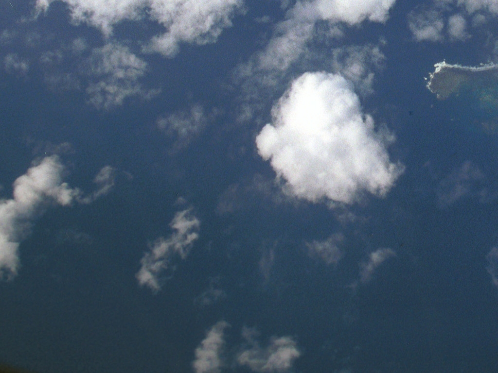 さらに高度を上げ、雲でちょっとわからないけれど、渡嘉敷島南端の阿波連岬のあたりかな?