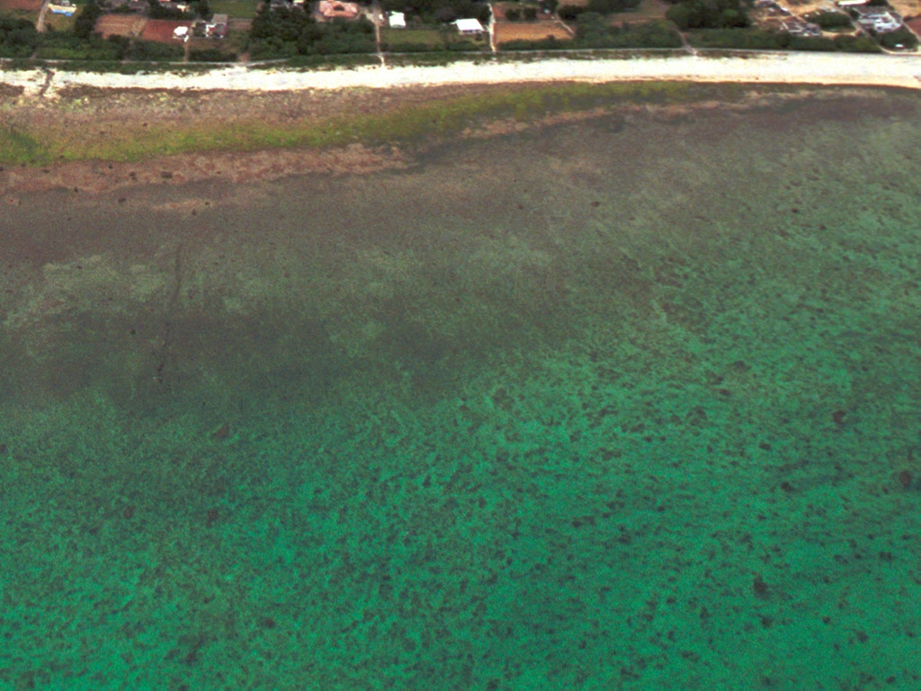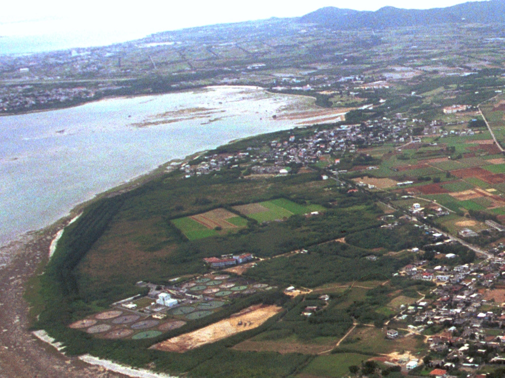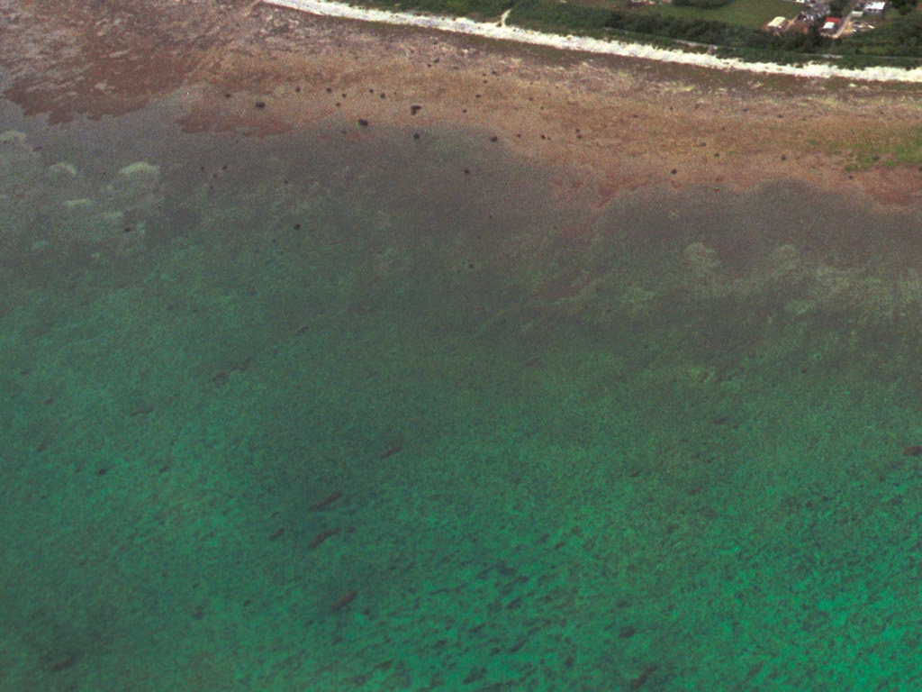 白保地区集落付近の美しい珊瑚礁。晴れた日ならば更に美しい。