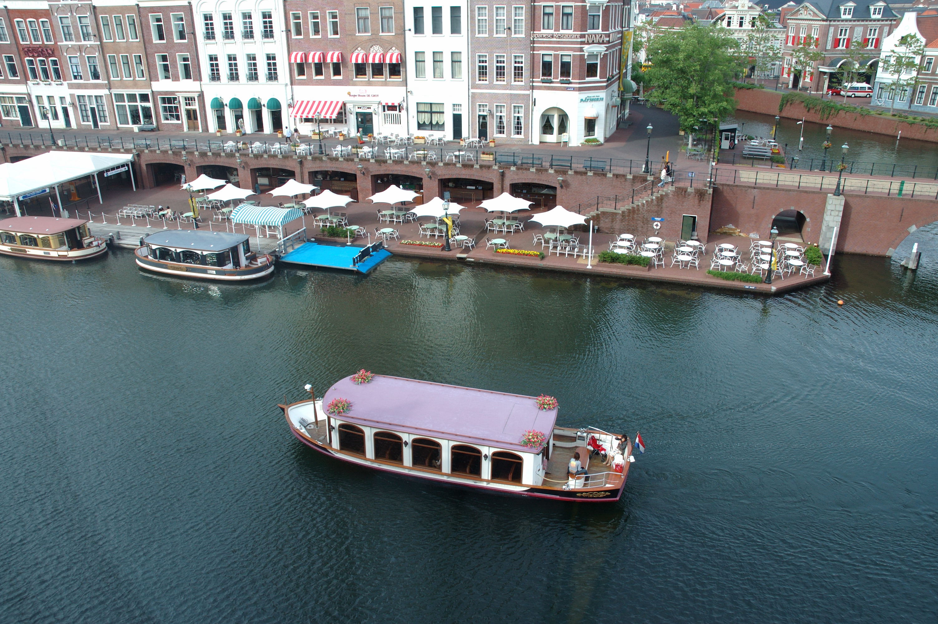 窓の下はカナルクルーザーで楽しむ運河めぐり。