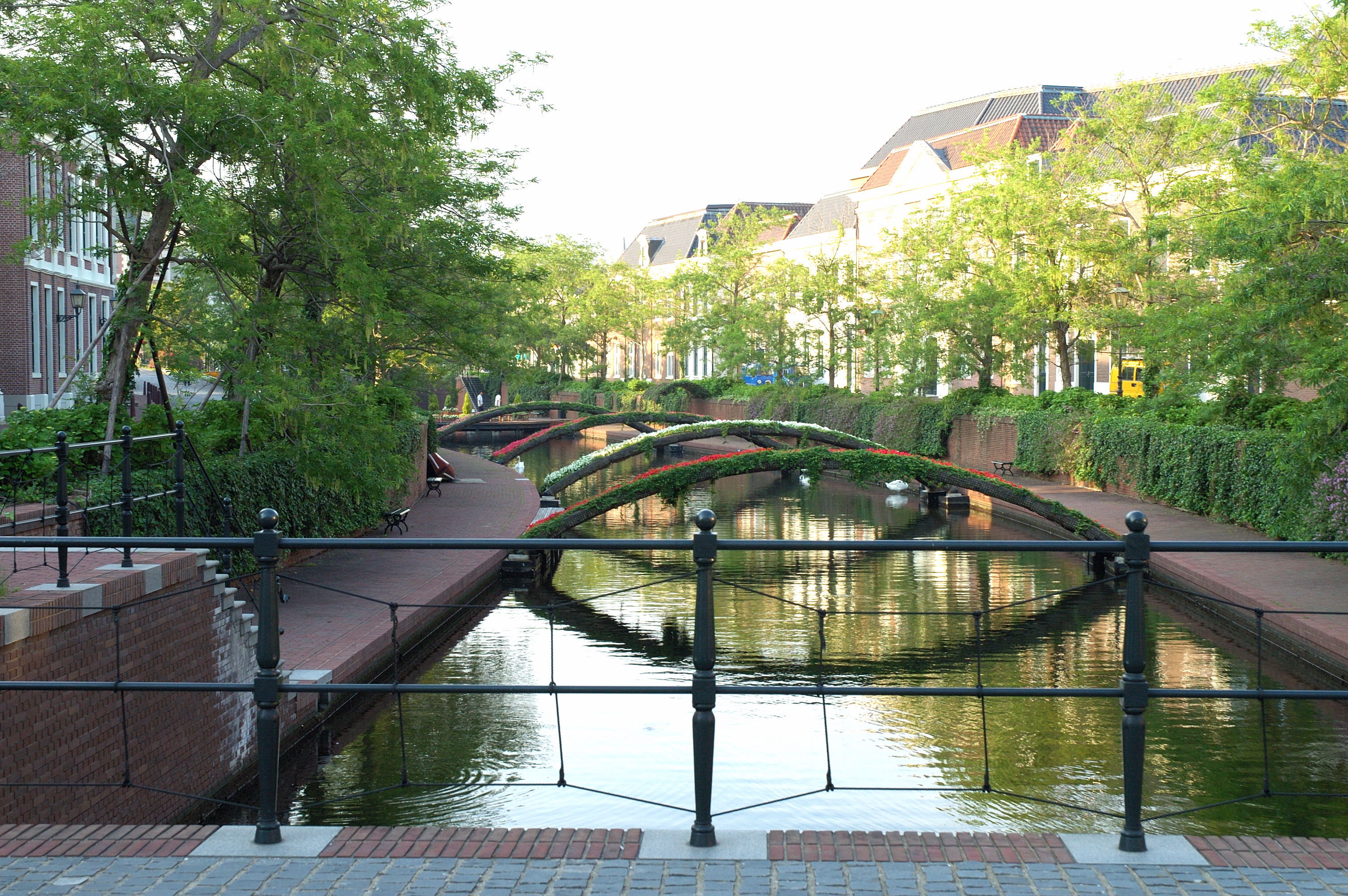 運河への影が長くなりました。5月の長崎、夕日が差すもまわりはまだまだ明るいです。