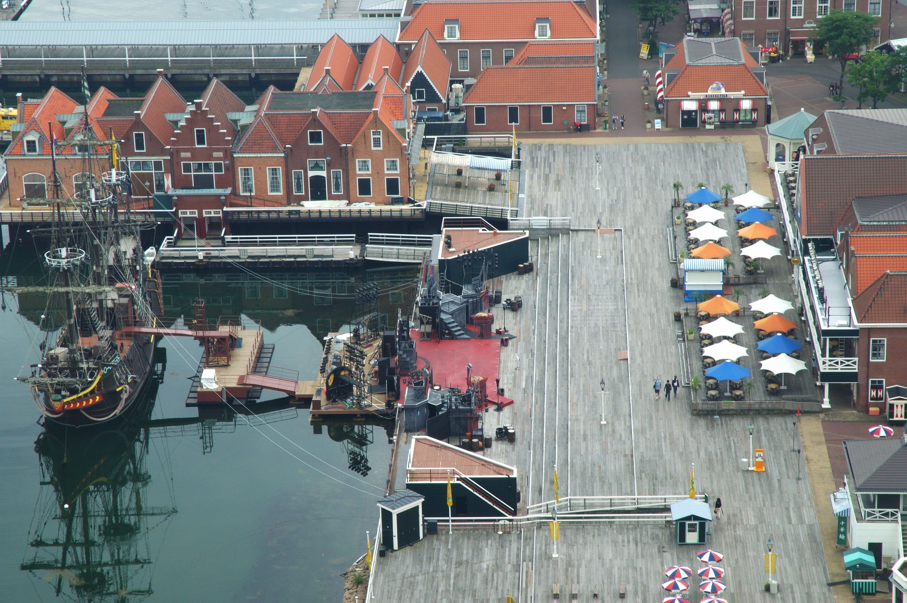 夜のイベントの中心地「オレンジ広場」。階段が観客席となり舞台が近いため迫力有るイベントが見れる。